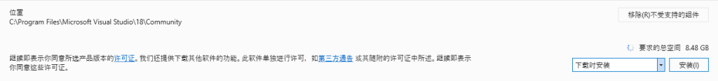 - 在 安装 Installer 里,右下角选择【下载时安装】,然后单击【安装】按钮。