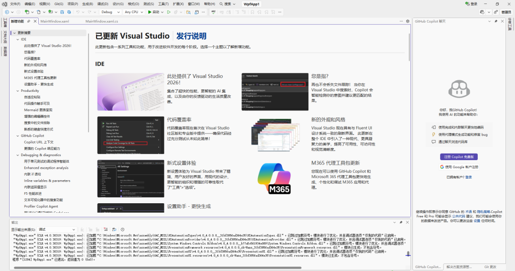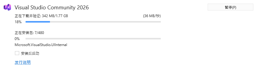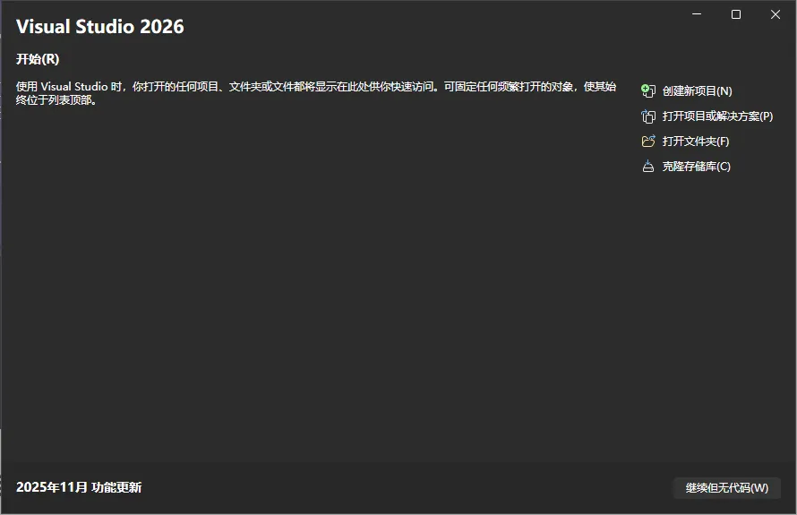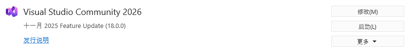 - 安装完成,单击【启动】或者通过 Windows 菜单启动 Visual Studio 2026